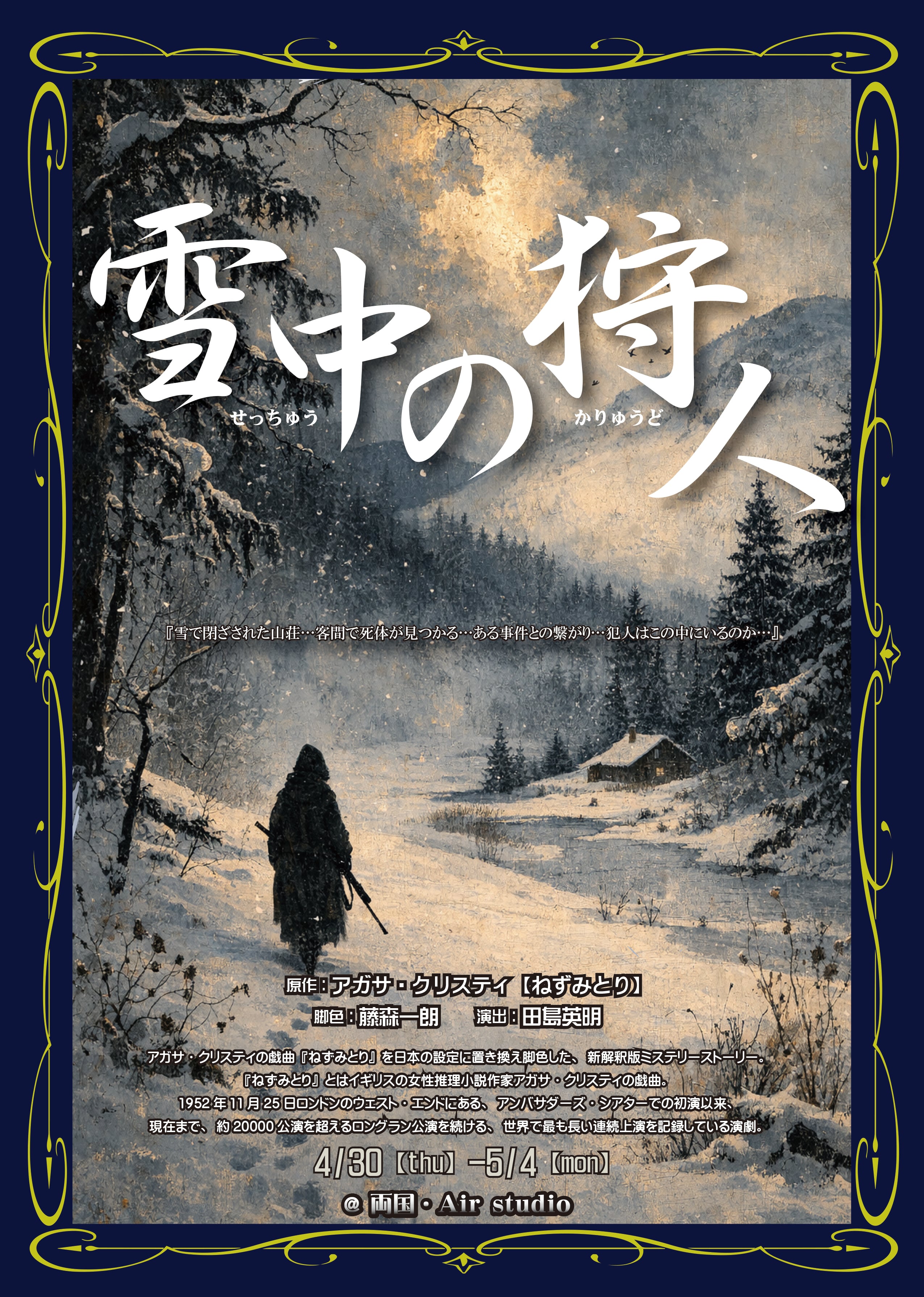 ※公演が感染症防止対策等の為、やもなく中止または延期になる場合がございます。応援キャストの初日公演が行われた場合は、払い戻しはございません。また、応援キャストが出演される前に、中止または延期になった場合は、払い戻しをさせて頂きます。予めご了承ください。